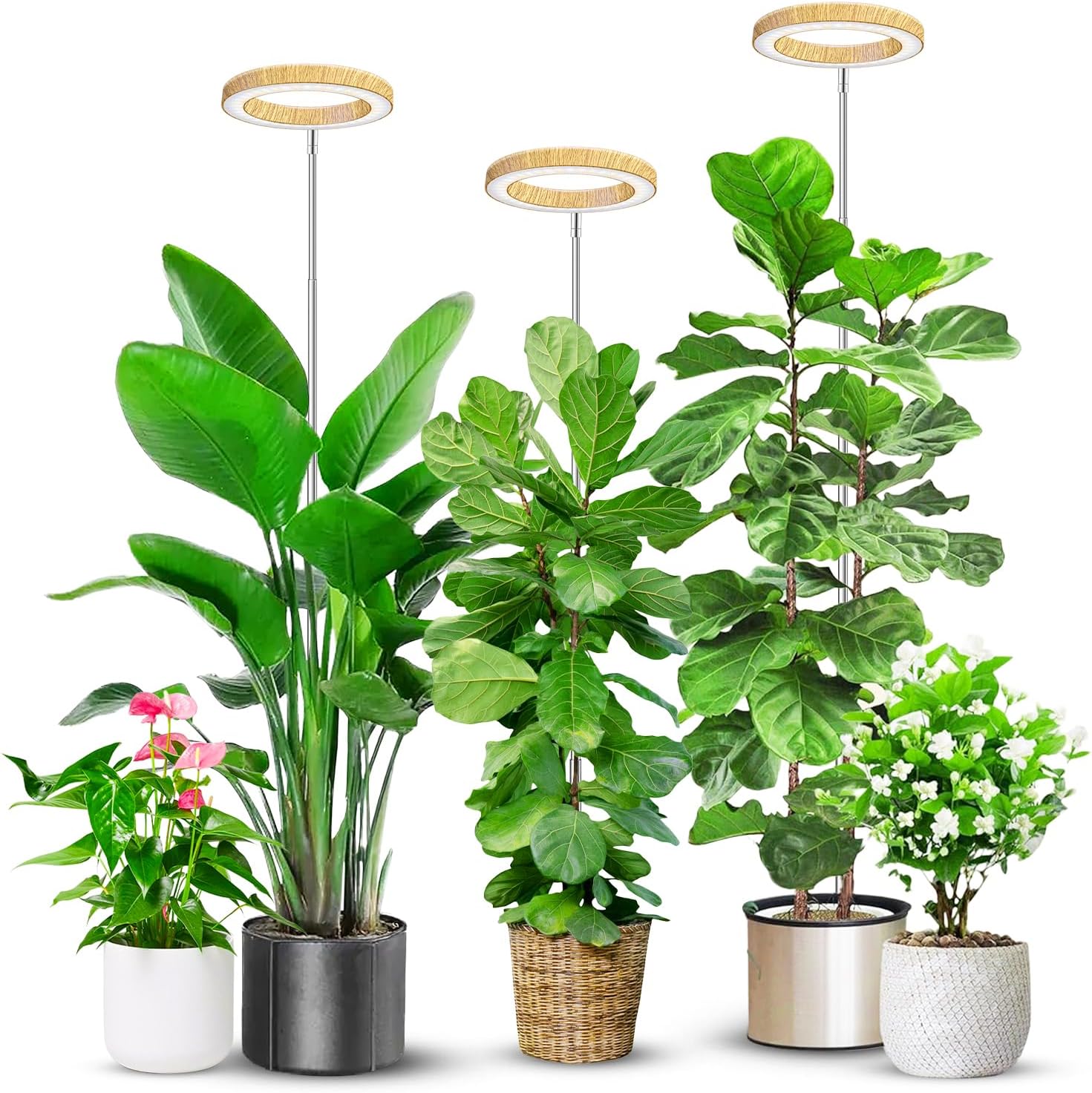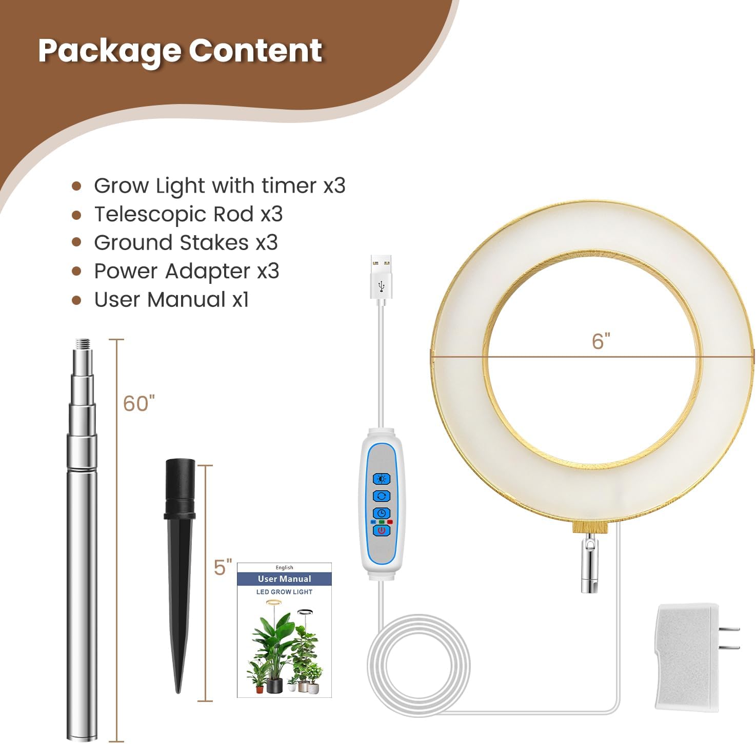 Stylish Faux Wood Grain Design: This grow light features a 6.3 inch faux wood grain ring, providing greater wear resistance than traditional bamboo housings while preventing surface peeling. Also, It is designed with 80 high efficiency diode LED (5V 3A adapter) to provide light source that is 30% brighter.