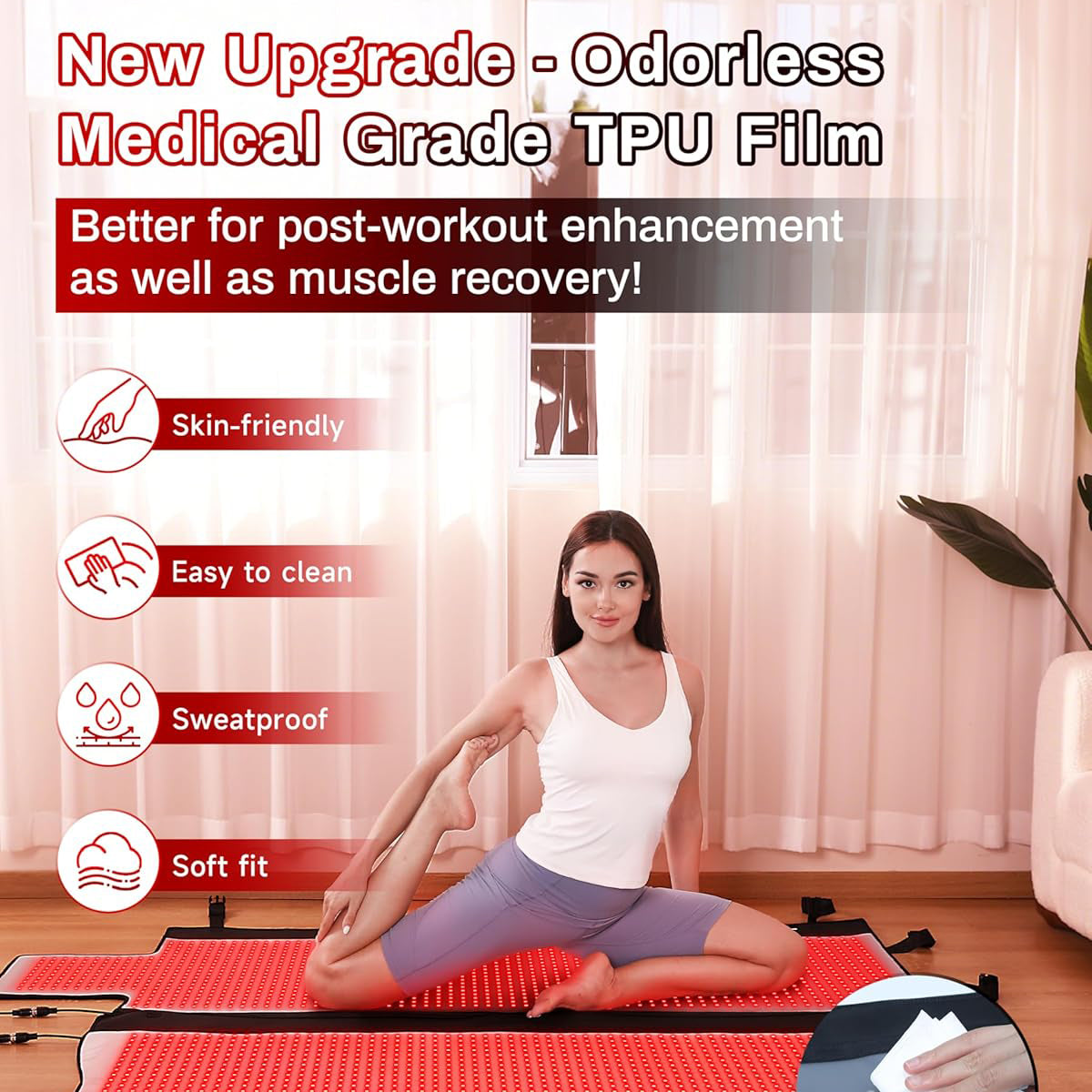 𝗠𝗲𝗱𝗶𝗰𝗮𝗹-𝗚𝗿𝗮𝗱𝗲 𝗧𝗣𝗨 – 𝗖𝗹𝗲𝗮𝗻, 𝗦𝗮𝗳𝗲 & 𝗦𝗸𝗶𝗻-𝗙𝗿𝗶𝗲𝗻𝗱𝗹𝘆: Crafted from premium medical-grade TPU, this mat is odor-free, and hypoallergenic. It's soft on sensitive skin, easy to clean, and ideal for sweat-prone post-workout recovery or daily therapy routines.