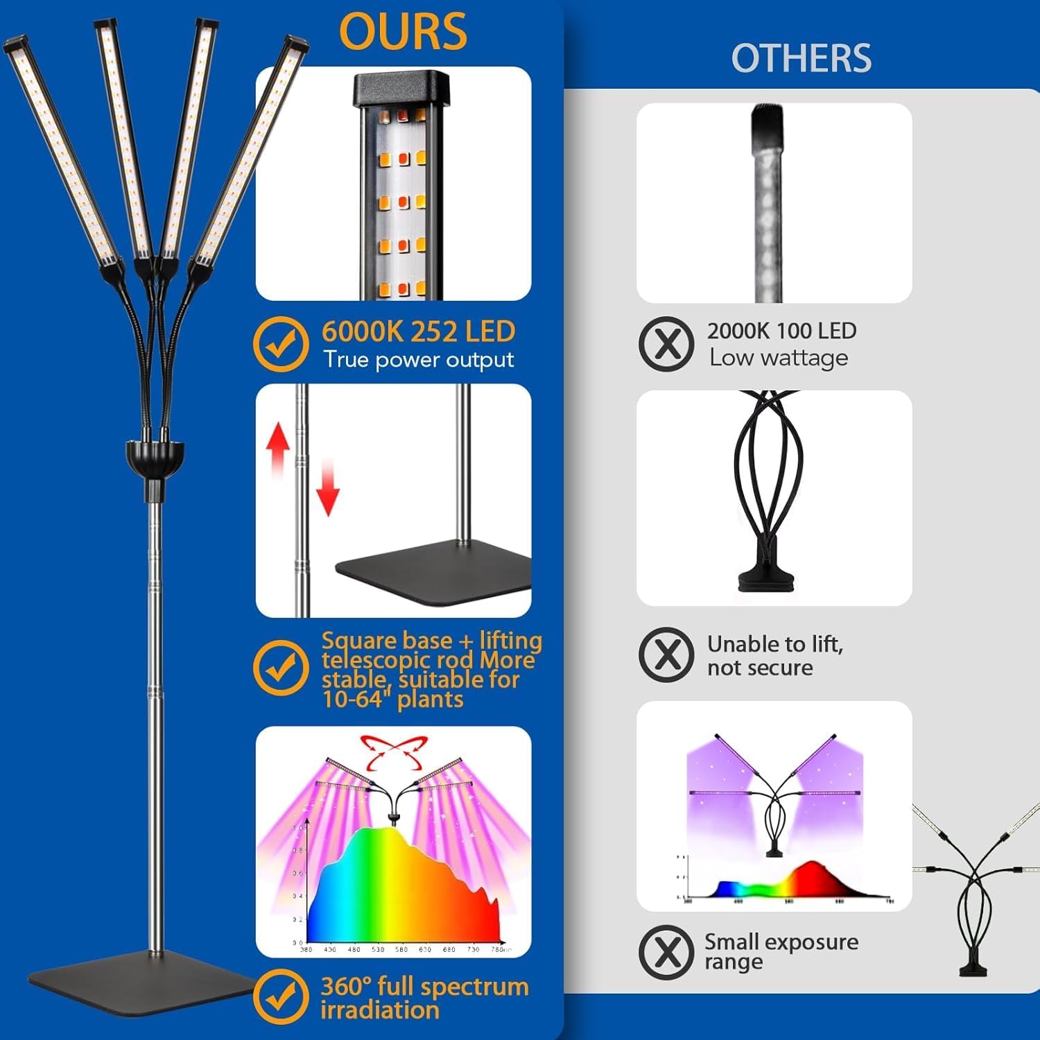 【ADJUSTABLE BRIGHTNESS】:Grow light indoor plants use 10 brightness adjustment, ranging from 10% to 100%, we can switch at will, plant grow lights indoor according to your needs to adjust the light intensity of different plants or growth stages, providing huge lighting power, plant growth rate is more than 5 times that of nature, without the need for high electricity bills.