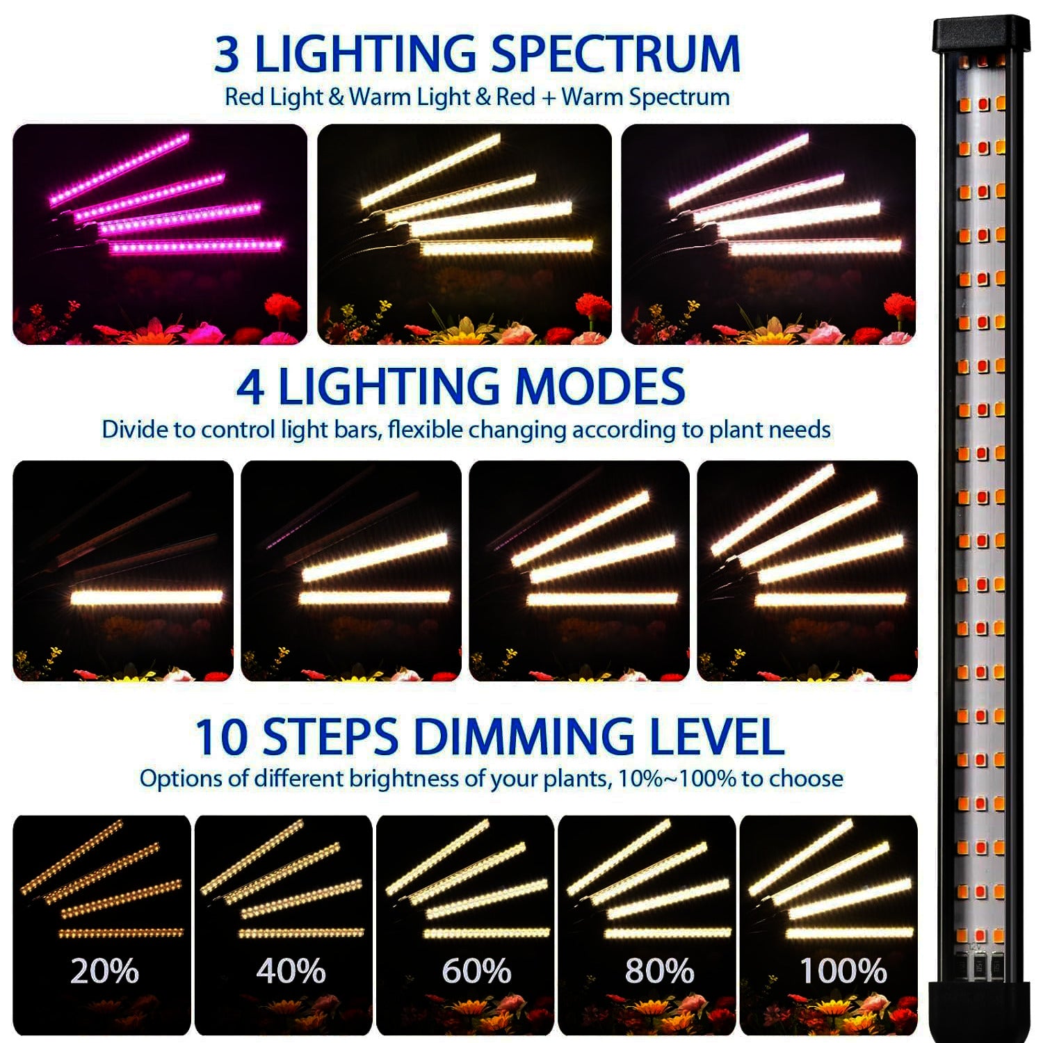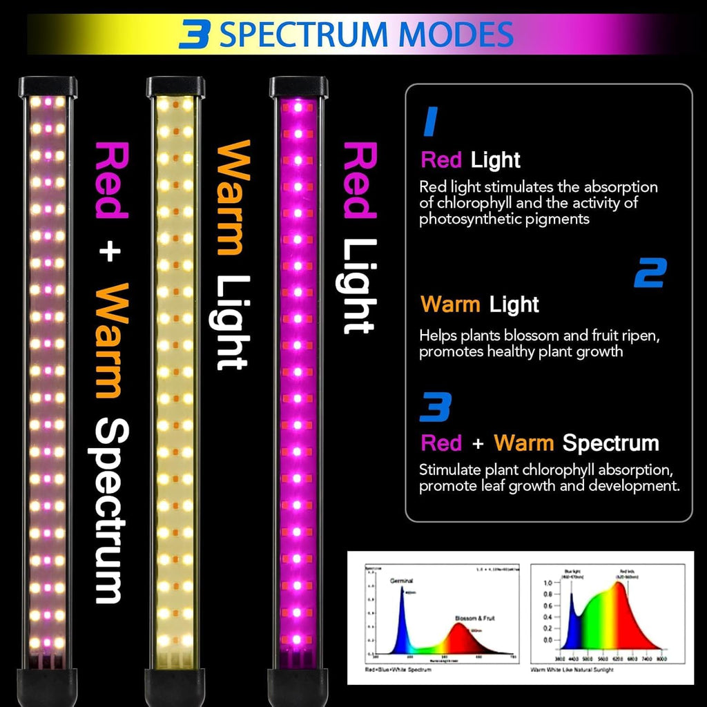 【FULL SPECTRUM LIGHT】:Ours full spectrum grow lights for indoor plants Using a mix of red, warm white and red white leds to simulate natural sunlight benefits plants at all stages of growth,Effectively supplement the lack of natural sunshine, promote the healthy growth of plants.