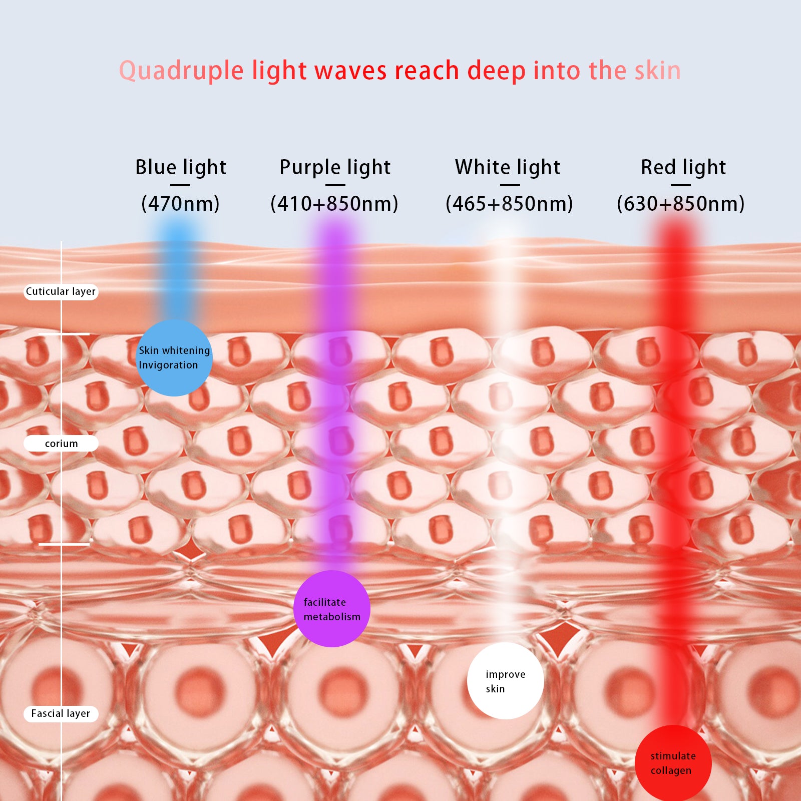 2. LED beauty mask effect: whitening skin, shrink pores, hyperplasia of collagen, increase skin luster and elasticity, anti-aging, firming skin, improve dark circles, bags under the eyes, fine lines, fade dark spots and dry spots, promote wound healing, improve oil pox skin, inhibit acne removing acne, wound , improve allergic skin, dispelling red blood, accelerate the absorption of skin care products, improve the quality of sleep.